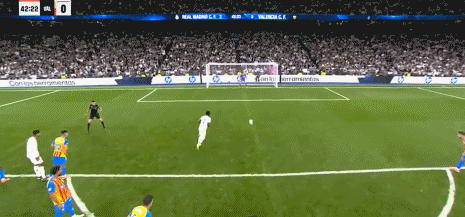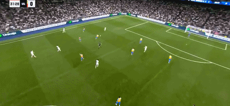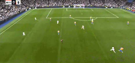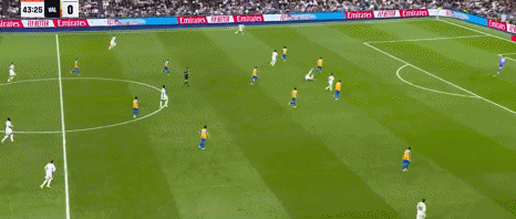 第44分钟,巴尔韦德助攻,贝林厄姆兜射入死角,皇马3-0