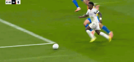 第45+5分钟,维尼修斯传球,居莱尔推射被扑住
